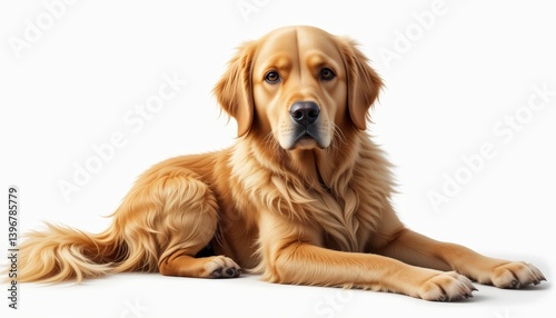 Golden Retriever Dog Studio Portrait A Relaxed Golden Canine on White
