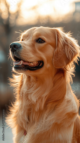 Golden retriever enjoying a sunny afternoon in a park with a soft breeze