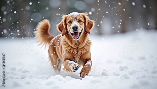 dog, gold, retriever, running, snow, happy, playful, winter, animal, pet, active, fur, joy, nature, snowflake, landscape, cold, youth, energetic, canino, fun, companionship, paw, happiness, photo, excitement, beautiful, cute, scene, vibrant, friendly, adventure, festive, purebred, exercise, snow-covered, warmth, activity, winter landscape, cheerful
