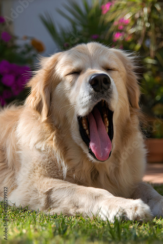 Golden Retriever in Mid-Yawn, Embracing Lazy Afternoon Vibes in Pastoral Beauty
