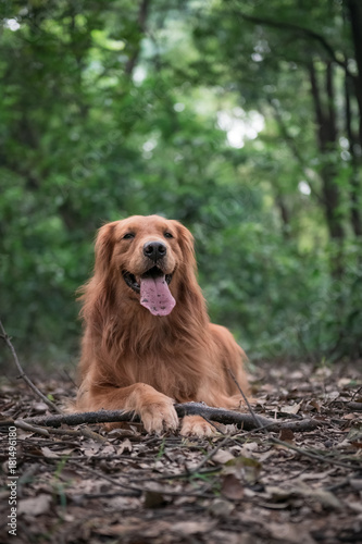 Golden retriever in the outdoor jungle