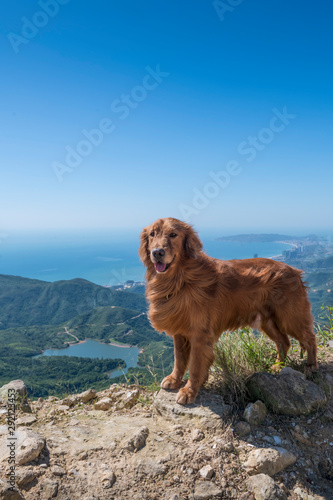 mammal, pet, animal, landscape, dog, sea, golden retriever, cute, travel, hair, mountain, pretty, sunny, skyline, sky, nature