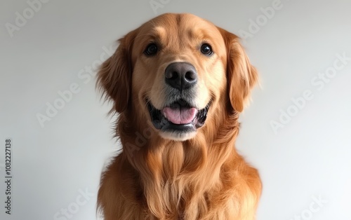 Golden Retriever on White Background – Adult golden retriever sitting and looking toward the camera with a friendly expression