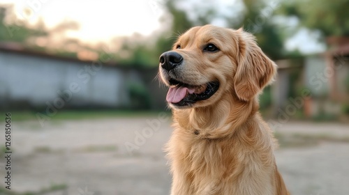 Golden Retriever Outdoors, Calm Portrait, Natural Setting, Potential Stock Photo