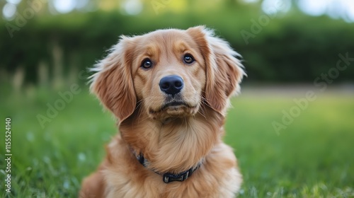 golden retriever, dog, pet, field, grass, daylight, stare, attentive, furry, loyal, companion, cute, adorable, friendly, animal, portrait, domestic, outdoors, nature, relaxed, landscape, calm, serene, playful, charme, loving, warm colors, happy, joyful, obedient, alert, happiness, lifestyle, natural, pretty, photogenic, closeup, countryside, charming, delightful