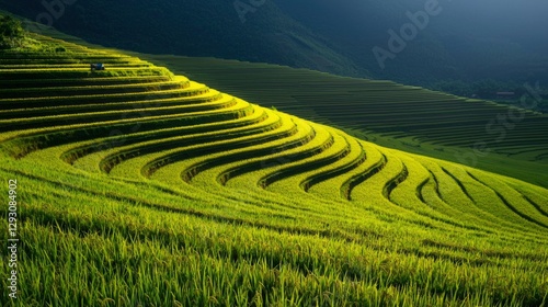 rice, terrace, landscape, nature, green, agriculture, farming, field, asia, vietnam, travel, scenic, vale, mountain, sunlight, gold, morning, rural, countryside, destination, tour tourism, beautiful, serene, peaceful, vibrant, lush, crop, cultivation, paddy, food, growth, harvest