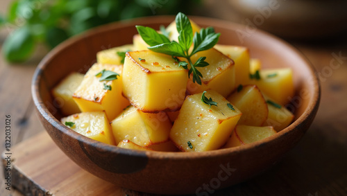 herb, wooden bowl, potato, roasted, gold, dish, bowl, side dish, healthy, ingredient, epicure, cookery, alimentary, culinary, comfort food, homemade, wholesome, dinner, lunch, appetising, organic, cooking, receipe, food photography, presentation, rustic, natural light, delicious, favor, dining, fresh produce, culinary arts, vibrant, texture, healthy lifestyle, savoury, vegetarian, hearty