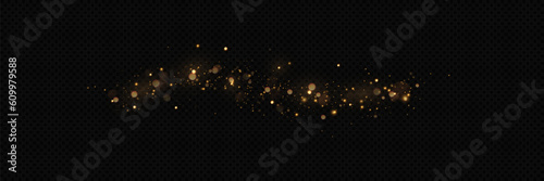 Golden sequins glow with many lights. Glittering dust. Luxurious background of golden particles.