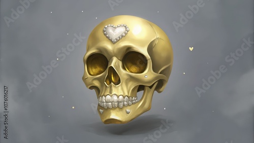 skull, gold, nubes, teeth, gem, gem, diamond, pearl, jewellery, sparkle, shiny, bling, love, death, dark, gothic, grisly, art, illustration, digital, design, abstract, symbol, grim, skeleton, bone, morbid, grey, background, light, shadow, vintage, style