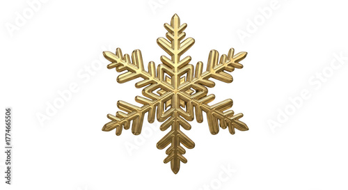 Golden snowflake isolated on transparent background, a festive winter decoration