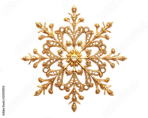 Golden snowflake with intricate filigree details, showcasing elegance and craftsmanship. Perfect for winter decor or holiday themes