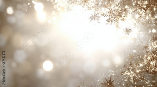 Golden Snowflakes and Bokeh Lights on Radiant Festive Background