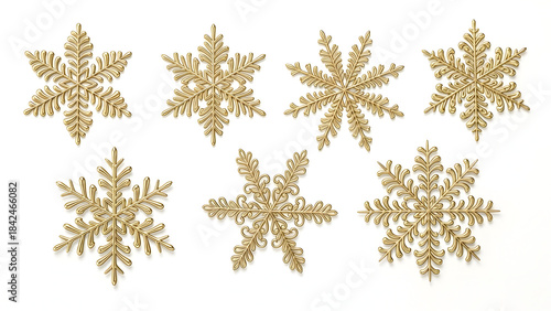 Golden Snowflakes on White Background