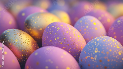 egg, easter, holiday, celebration, spring, decoration, pastel, purple, gold, shiny, festive, colourful, tradition, religious, symbol, happy, new, life, christian, faith, joy, family, friends, fun, gift, chocolate, candy, treat, basket, hunt, dye, paint, decor, speckled, pattern, close, up, macro, still, texture, light, sharpened, blur, background, soft, bright, sparkle, glistering