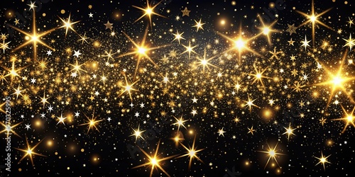 Golden stars twinkling in the dark night sky, forming a sparkling celestial scene filled with bright starbursts and glittering lights, evoking a magical, cosmic, and festive atmosphere for celebration