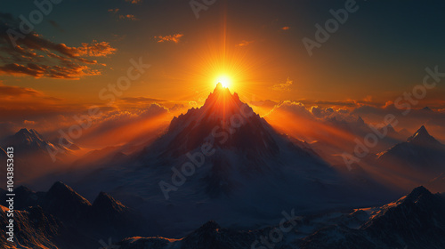 sunrise, mountain, dawn, landscape, nature, travel, sky, cloud, peak, illumination, golden hour, scenery, exploration, adventure, calmness, wilderness, beauty, ridge, horizon, natural light, scenic view, peaceful, breathtaking, sun ray, high altitude, serenity, colorful sky, natural beauty, majestic, inspiring, travel destination, alpine, mountain summit, sunset, mountain, cloud, peak, mount, volcano, silhouette