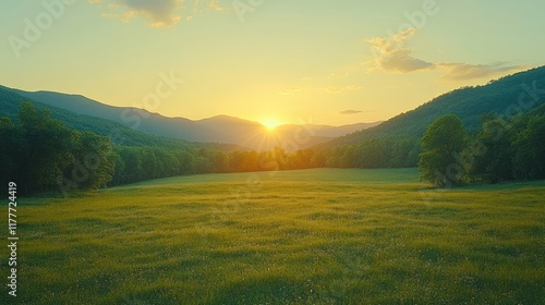 sunset, meadow, mountain, vale, forest, nature, landscape, sunlight, gold, green, peaceful, calm, travel, vacation, scenic, beauty, spring, summer, view, hiking, picnic, photo, tranquil, idylli, explore, adventure, freedom, amazing, breathtaking, gorgeous, stunning, beautiful, horizon, colours, light, sunrise, grass, tree, cloud