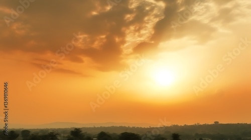 sunset, sun, sky, cloud, orange, gold, yellow, hill, tree, landscape, nature, horizon, evening, dusk, light, warm, picturesque, scenic, beautiful, tranquil, serene, calm, peaceful, majestic, vibrant, breathtaking, spectacular, stunning, amazing, incredible, marvellous, marvellously, extraordinary, magnificent, glorious, radiant, illumination, atmospheric, hazy, silhouette