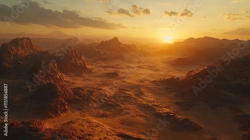 Golden Sunset Over Rugged Desert Mountainscape