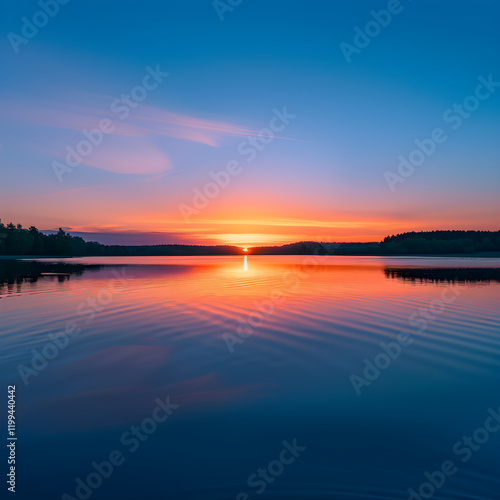 Golden Sunset Reflections: Capturing Tranquility and Serenity in a Stunning Lakeside View