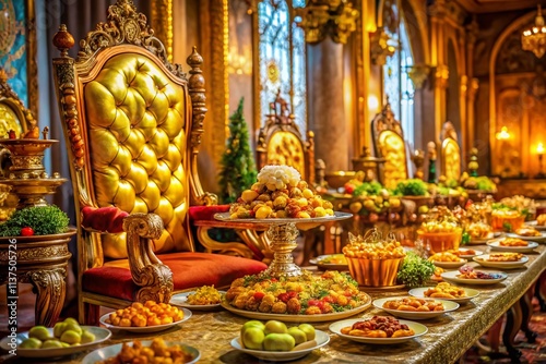 Golden Throne Room Feast: Regal Food Photography, Luxury Dining, Gourmet Food, Royal Banquet