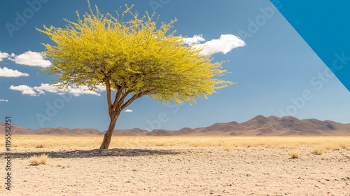 Golden tree bravely stands in vibrant desert landscape under bright sun. AI Generated