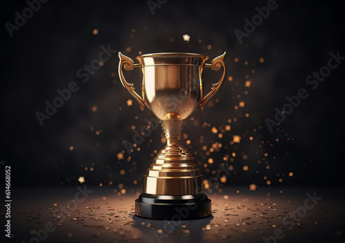 golden trophy and stars on a beige background, in the style of 3d, miniature core