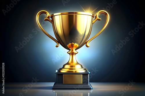Golden Trophy on Dark Background with Bright Lighting and Reflective Surface, Symbolizing Success and Achievement in Various Competitions