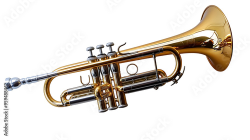 Golden Trumpet with Silver Accents Isolated on Transparent Background