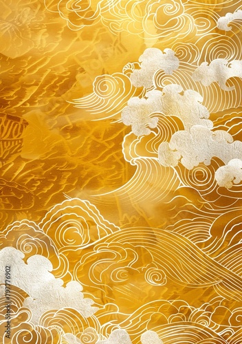celebration, gold, wave, elegant, japanese, pattern, sparkling, cloud, traditional, modern, digital, print, media, high-quality, detailed, light, art, contemporary, design, atmosphere, tradition, gold, white, wallpaper, gradient, sparkle, festive, print media, japanese culture