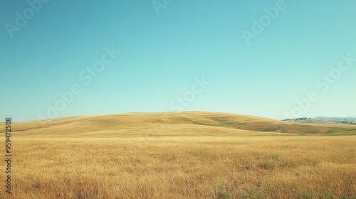 field, wheat, gold, sky, blue, hill, rolling, landscape, rural, nature, summer, agriculture, harvest, crop, farm, farmland, grass, green, brown, yellow, horizon, outdoors, huge, immensity, open, expanse, meadow, pasture, countryside, scenery, beauty, tranquil, serenity, peace, quiet, calm, peaceful, stillness, simplicity