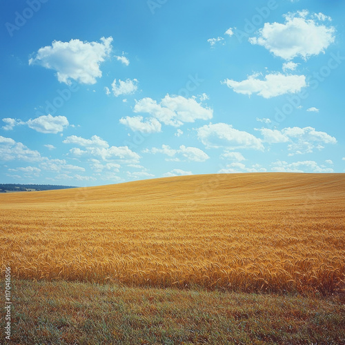 wheat, field, sky, cloud, blue, gold, yellow, agriculture, farming, harvest, summer, nature, landscape, rural, country, grain, food, crop, sun, bright, sunny, day, growth, gold, horizon, idylli, peaceful, scenic, beautiful, vibrant, meadow, pasture, plain, prairie, farm, farmland, cereal, barley, rye, oat, produce, ingredient, bread, flour, baking, nourishment, healthy, diet