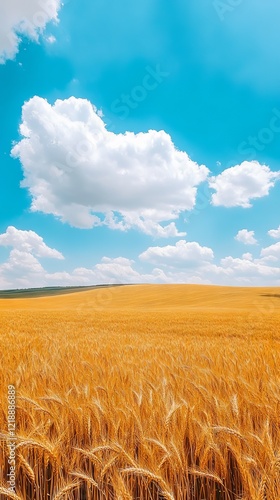 Golden wheat field under a vibrant blue sky