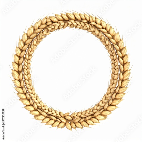 Golden Wheat Wreath Circle Frame on White Background