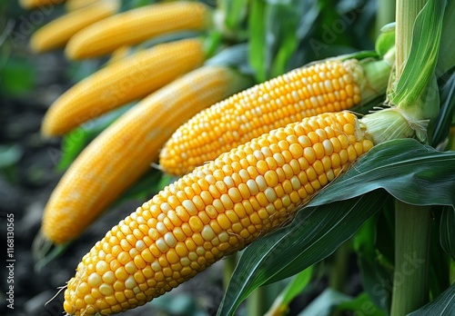 Golden Yellow Corn Growing in Field, Ears of Maize Ready for Harvest, Agriculture Produce, Ears of Maize Ready for Har