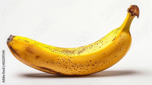 Golden-hued, juicy banana in close-up isolated on a white backdrop with ample copy space for background text, Generative AI.