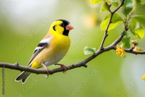 Goldfinch Amidst Nature: A Vibrant Bird Perched on a Tree Branch in the Wild