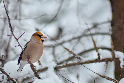 Goldfinch sitting on branch in winter season