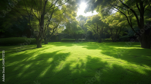 grass, landscape, sky, field, green, golf, nature, tree, summer, park, meadow, blue, tree, course, lawn, forest, spring, cloud, cloud, beautiful, outdoors, sun, sport, rural, season, generative, ai, garden, beauty, fairway, view, water