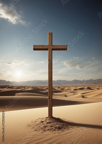 Good Friday concept Christian cross in a barren desert representing the desolation