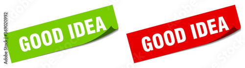 good, idea, sticker, label, peeler, signs, tags, badge, banner, design, element, emblem, flier, insignia, isolated, note, notice, page, paper, peel, price tag, rectangular, set, square, template, vector, vignette, white background, green, red