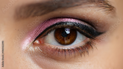 Gorgeous woman’s eye with soft makeup, showcasing natural beauty with neutral eyeshadow and subtly defined lashes. Series of images.