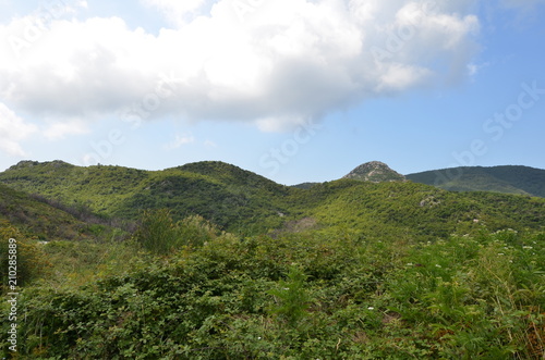landscape, mountain, sky, nature, mountain, green, cloud, hill, blue, cloud, grass, forest, summer, panorama, tree, view, travel, tree, day, vale, rock, hill, countryside, meadow, field