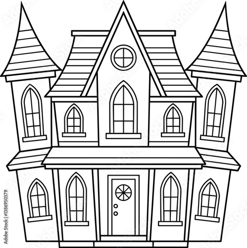 Gothic Haunted House Line Art – Halloween Outline Vector Illustration