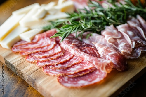 Gourmet Charcuterie Board with Sliced Meats and Fine Cheeses