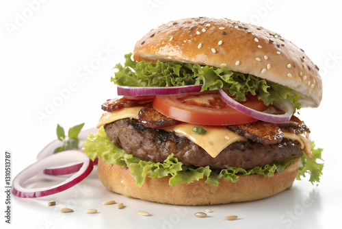 Gourmet cheeseburger clipart with melted cheddar red onions fresh lettuce and juicy beef patty