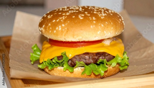 Gourmet Cheeseburger with Fresh Lettuce, Tomato, and Onion