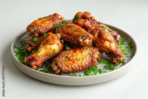 isolated, white, background, plate, gourmet food, black pepper, food preparation, mouth-watering, chicken wings, food industry, salt, fine dining