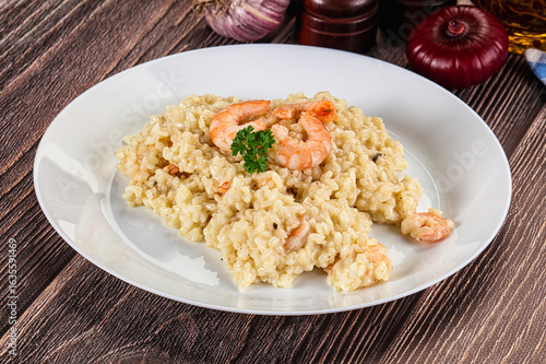 risotto, prawn, epicure, shrimp, rice, food, seafood, meal, eatery, cooked, dish, dinner, delicious, healthy, italian, traditional, lunch, mediterranean, cookery, background, white, plate, fish, green, italy, diet, receipe, sea, fresh