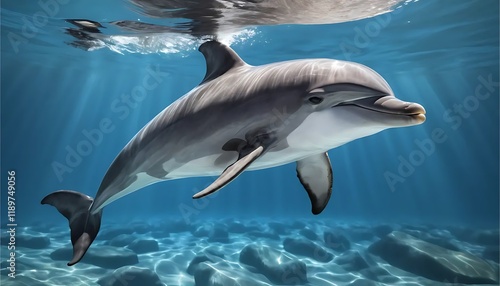 dolphin, ocean, underwater, sea, marin, wildlife, nature, animal, mammal, aquatic, serene, peaceful, tranquil, sunlit, water, blue, photo, image, photo, artwork, art, picture, digital, graphic, design, visual, aesthetic, beautiful, elegant, graceful, majestic, oceanic, aquamarine, commercial, stock, print, poster, canvas